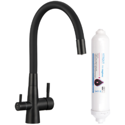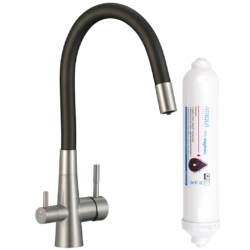 Riveco została wyposażona w dwie niezależne dźwignie – jedną do wody filtrowanej, drugą do niefiltrowanej. Dzięki temu możesz intuicyjnie przełączać się między wodą do picia a tą używaną do gotowania czy mycia naczyń. System ten eliminuje potrzebę dodatkowych kraników i zachowuje czystość oraz spójność estetyczną w kuchni.