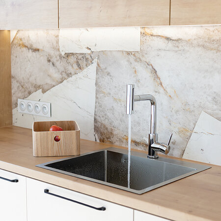 Chromowane wykończenie Rotaro doskonale komponuje się ze zlewozmywakami stalowymi i granitowymi, pasując zarówno do modeli jedno-, jak i wielokomorowych. To bateria, która łączy nowoczesne technologie z ponadczasową estetyką, tworząc niezawodne rozwiązanie dla każdej kuchni.