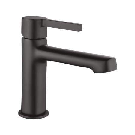 Alita – czarna bateria umywalkowa stojąca z korkiem klik-klak