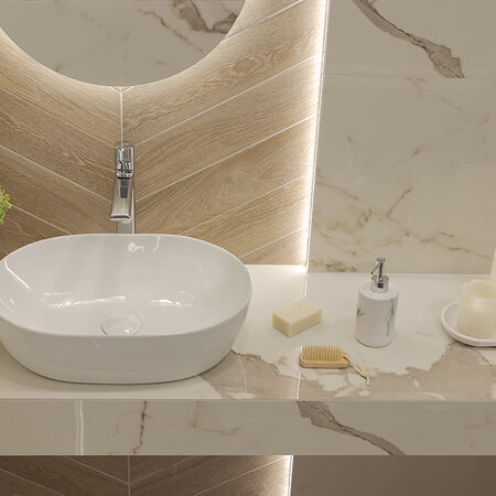 Aerator NEOPERL z systemem antykamień zapewnia czysty strumień wody przy minimalnym zużyciu, co stanowi korzyść zarówno dla środowiska, jak i Twojego budżetu. Tores z korkiem klik-klak doskonale pasuje do umywalek nablatowych, jakie znajdują się w ofercie Laveo, podkreślając ich design, elegancję i styl.