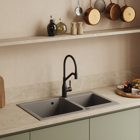 Zlewozmywak Milos w kolorze szarym to nowoczesne i stylowe rozwiązanie, które doskonale uzupełni każdą współczesną kuchnię. Ten dwukomorowy model został stworzony z myślą o maksymalnej funkcjonalności i estetyce, sprawdzając się zarówno w jasnych, jak i stonowanych wnętrzach. Większa komora idealnie nadaje się do mycia dużych naczyń, takich jak garnki czy blachy, podczas gdy mniejsza świetnie służy do szybkiego płukania warzyw i owoców.