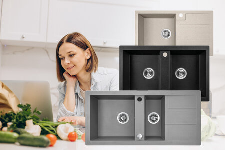 Zlewozmywak Milos w czarnym monokolorze to esencja nowoczesnej elegancji, która doskonale wpisuje się w estetykę współczesnej kuchni. Ten dwukomorowy model został zaprojektowany, aby maksymalnie zwiększyć funkcjonalność, jednocześnie dodając kuchni wyjątkowego charakteru. Większa komora sprawdza się idealnie przy myciu dużych naczyń, takich jak garnki i blachy do pieczenia, podczas gdy mniejsza komora jest idealna do szybkiego płukania owoców, warzyw i mniejszych przedmiotów.