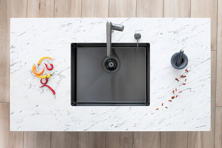 Wykonany ze stali 304, zlew Aden jest niezwykle trwały i odporny na codzienne użytkowanie. Odporność na wysokie temperatury, szok termiczny oraz zarysowania sprawiają, że można go bez obaw wykorzystywać w codziennych czynnościach kuchennych. Dodatkowo, powierzchnia zlewu została pokryta specjalną powłoką ułatwiającą utrzymanie go w czystości.