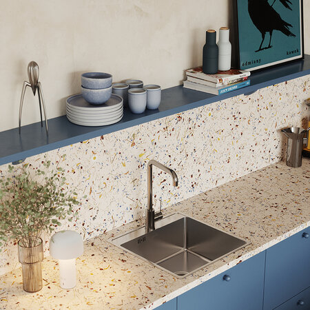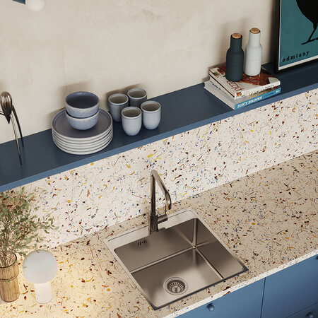 Besos charakteryzuje się niezwykłą funkcjonalnością, głównie za sprawą jego dużej i głębokiej na 19,5 cm komory, która została całkowicie wygłuszona, zapewniając minimalizację hałasu podczas codziennych prac kuchennych. Ponadto, zlewozmywak z fabrycznie wyciętym otworem pod baterię znacznie ułatwia jej instalację i zapewnia harmonijny wygląd całej konfiguracji.