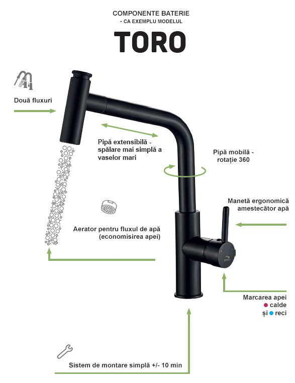 Ca tot ceea ce alegem pentru casa sau apartamentul nostru, de asemenea, și bateria de bucătărie, trebuie, în primul rand, să ne placă. Despre achiziționarea unui anumit model decidem noi personal, în principal pe baza dacă aceasta se potrivește cu designul interior și, în plus, ne ghidăm după obiceiurile noastre de până acum. Dar dacă avem nevoie (sau dorim) să înlocuim robinetul cu altul, merită să cunoaștem toate funcționalitățile pe care ni le poate oferi.