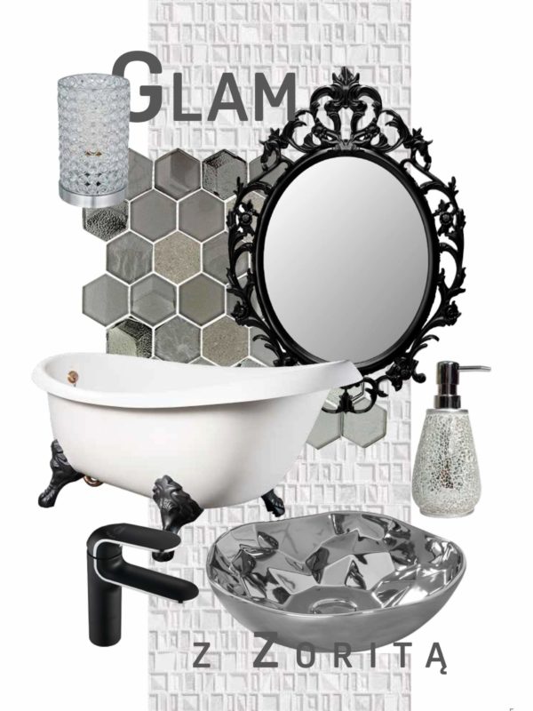 Trebuie să ne amintim că glamour înseamnă înainte de toate, accesorii elegante, sub formă de dozatoare strălucitoare din cristal, lumânări sau flori proaspete și merită să vă începeți cu ele aventura cu această estetică.