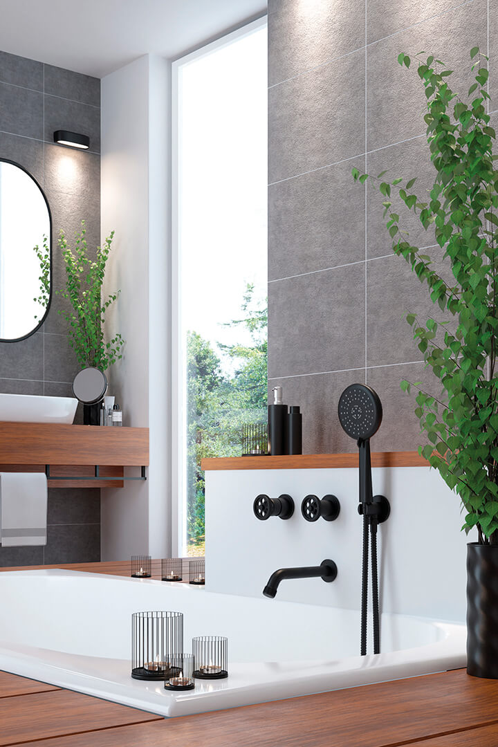 Culorile mai închise din seria Muro nu înseamnă că trebuie să fie întunecate sau copleșitoare, un strop de fantezie este suficient pentru a redescoperi baia. Acest lucru poate fi realizat în multe moduri - iluminat cald, accesorii colorate, combinarea pereților întunecați cu o podea mai deschisă (sau invers) sau împletirea lor cu un alb moale sau gri, care va însufleți camera. Combinația contrastantă de accesorii în culori mai întunecate - cum ar fi un robinet lavoar sau un robinet de duș, îi conferă un caracter și mai elegant.