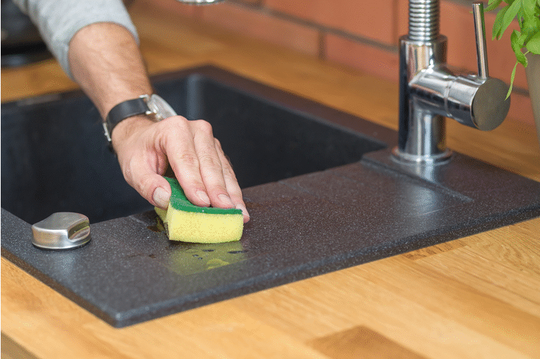 - Стойкость ь к царапинам – кухонные губки и мочалки , даже те более жесткие, в большинстве случаев не оставят царапин на поверхности гранитной мойки.