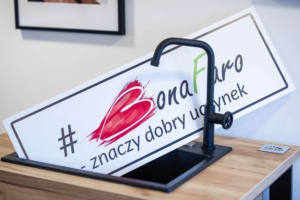 Для акции были выбраны мойки BonaFaro и Grenada, разработанные Марией Кубяк. Каждый покупатель мойки получит сертификат об участии в акции BonaFaro в качестве подтверждения того, что доход от продажи купленной мойки будет переведен маркой Laveo на описанную цель.