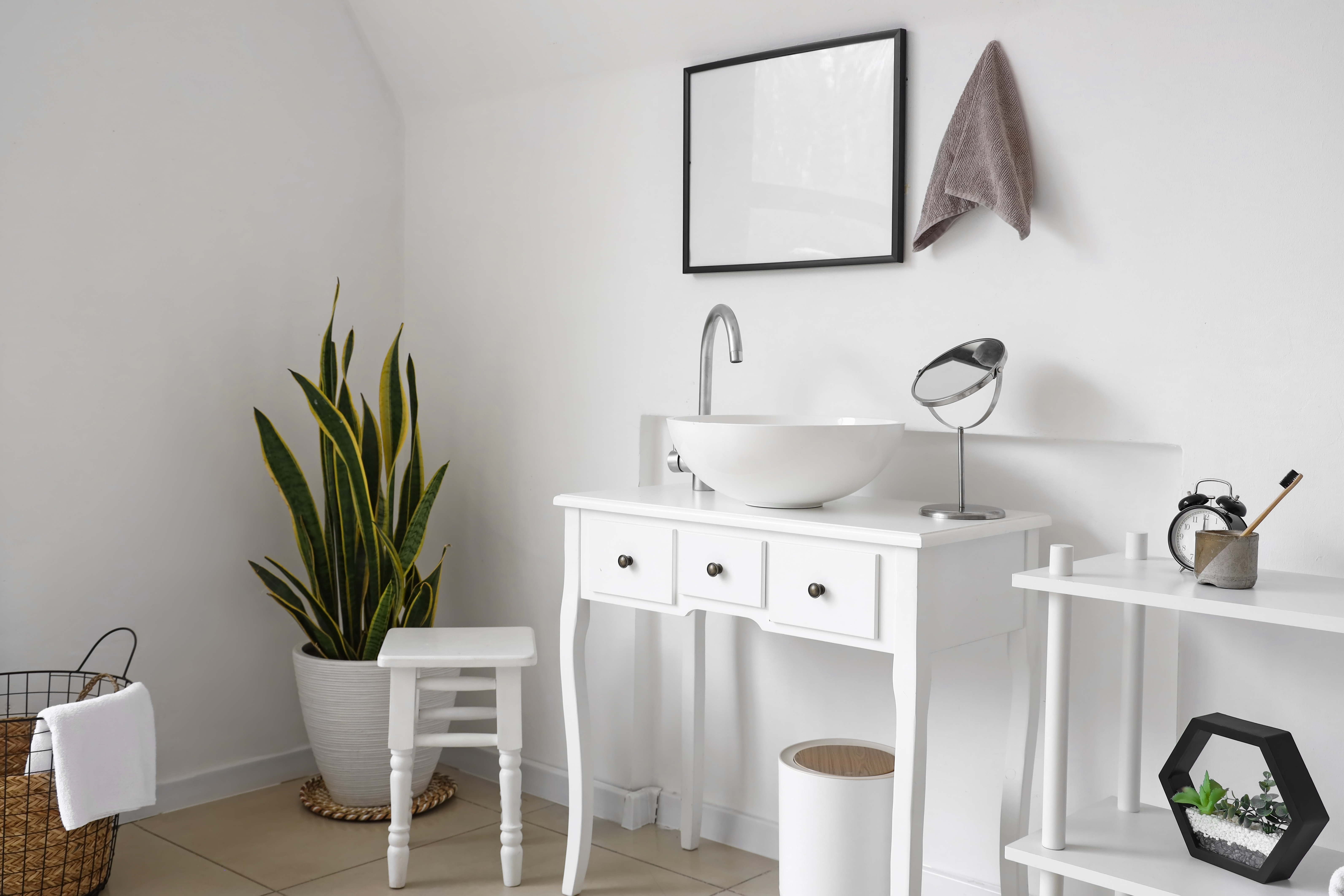Живые цветы, декоративные полотенца, большие зеркала или современные