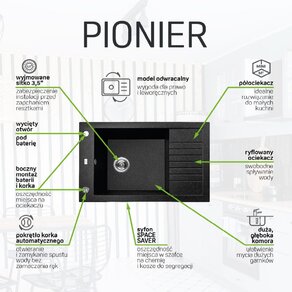 Новая гранитная мойка Laveo была создана для небольших помещений. Pionier посвящен людям, которые любят готовить и проводить много времени на кухне. Перемещая смеситель от крыла к краю чаши, получаем дополнительное рабочее пространство. – Крыло…