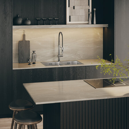 Уникальным преимуществом всех моделей Marmara является возможность их установки тремя разными способами. Мойки преимущественно используются в качестве встроенных моделей. Это, безусловно, самый простой способ установки, при котором требуется только вырезать отверстие соответствующего размера. Если под рукой имеются нужные инструменты, это можно сделать самостоятельно. Мойки Marmara можно крепить к нижней стороне тумбы – подвесной монтаж, однако, следует помнить, что для этого решения требуется специальная столешница, выполненная из влагостойких материалов, например камня или мрамора. Третий способ установки, требующий точной подготовки проема, – установка заподлицо со столешницей. Достаточно выфрезеровать по краях отверстия несколько миллиметров, чтобы скрыть кромку. Этот вариант идеален для тех, у кого на кухне деревянная столешница, и они хотят иметь ровную поверхность, облегчающую поддержание чистоты без углублений и уголков, в которых могут скапливаться крошки и прочие загрязнения.