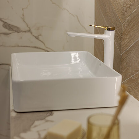 Kvadrato – это серия устанавливаемых на столешнице умывальников из высококачественной санитарной керамики. Коллекция сочетает в себе вневременной дизайн с современными характерными для этих моделей выразительными прямоугольными формами. Два варианта цвета, в которых изготовлены умывальники, это традиционный белый и классический черный, который в сочетании с современной фурнитурой создают идеальный дуэт.